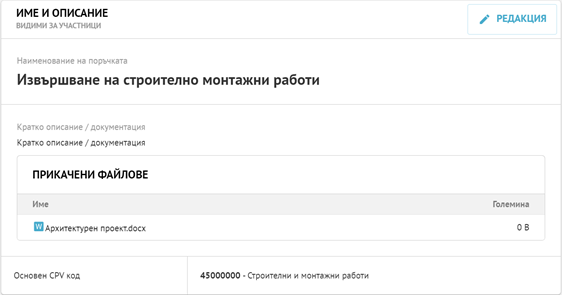 5.2.2. Създаване на обществена поръчка